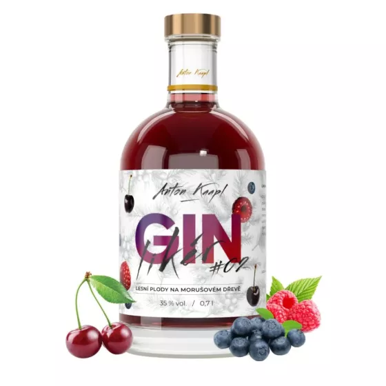 Anton Kaapl Gin #2 lesní plody na morušovém dřevě 35% Harmonický ginový likér s jemně nasládlou, dřevitě ovocnou chutí. V jeho tóninách se propojuje přirozená sladkost borůvek, malin a višní s hladkou kulatostí ginu. Vyrábí se průtahovou destilací ginového základu, který následně zraje na morušovém dřevě. Do výsledné chuti vstupuje ideální poměr našich borůvkových, malinových a višňových likérů. Země původu: Česká republika
