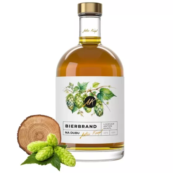 Anton Kaapl Bierbrand na dubu 43% Destilát z pivní mladiny, zrající na dubových chipsech a ředěný měkkou vodou z hlubinného vrtu (102 m) v klikovském souvrství Třeboňské pánve. Země původu: Česká republika