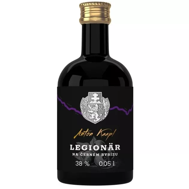 Anton Kaapl Legionär na černém rybízu 38% Likér z této edice je vyroben macerací sušených plodů černého rybízu ve velejemném obilném lihu, s přidáním rybízového destilátu. Zředěn je měkkou demineralizovanou vodou z 102 metrů hlubokého vrtu v klikovském souvrství Třeboňské pánve, doslazen cukrem a dochucen přírodním aroma černého rybízu. Země původu: Česká republika