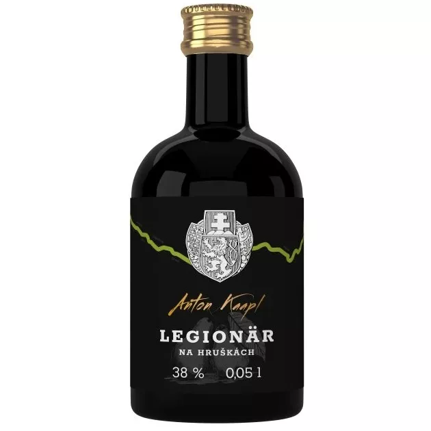 Anton Kaapl Legionär na hruškách 38% Vyrobeno macerací sušených plodů hrušek ve velejemném obilném lihu s přidáním hruškového destilátu a naředěno měkkou demineralizovanou vodou ze 102 metrů hlubokého vrtu v klikovském souvrství Třeboňské pánve. Doslazeno cukrem a doaromatizováno přírodním aroma z hrušek. Země původu: Česká republika
