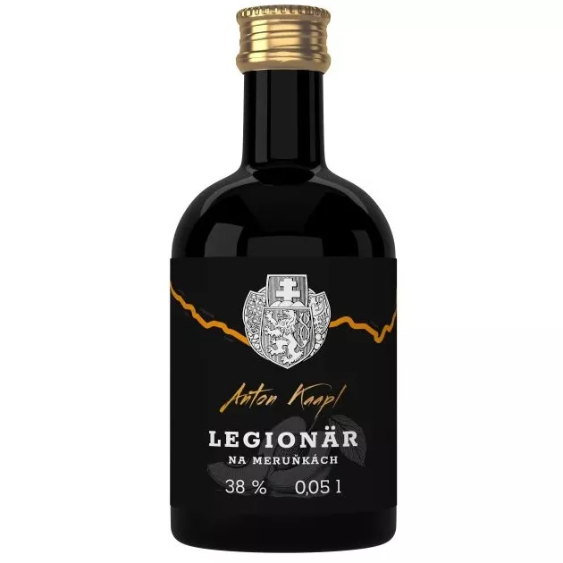 Anton Kaapl Legionär na meruňkách 38% Tento likér vznikl macerací sušených meruněk ve velejemném obilném lihu s přidáním meruňkového destilátu. Zjemněn je měkkou demineralizovanou vodou z 102 metrů hlubokého vrtu v klikovském souvrství Třeboňské pánve, doslazen cukrem a dochucen přírodním meruňkovým aromatem. Země původu: Česká republika