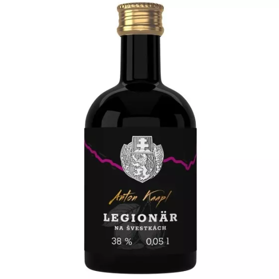 Anton Kaapl Legionär na švestkách 38% Macerát ze sušených švestek ve velejemném obilném lihu s přídavkem švestkového destilátu. Zjemněno měkkou vodou z hlubinného vrtu Třeboňské pánve, doslazeno a doladěno přírodním švestkovým aromatem. Země původu: Česká republika