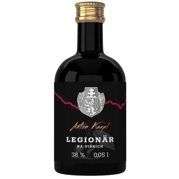 Anton Kaapl Legionär na višních 38% Vyrobeno macerací sušených plodů višní ve velejemném obilném lihu s přidáním višňového destilátu a naředěno měkkou demineralizovanou vodou ze 102 metrů hlubokého vrtu v klikovském souvrství Třeboňské pánve. Doslazeno cukrem a doaromatizováno přírodním aroma z višní. Země původu: Česká republika